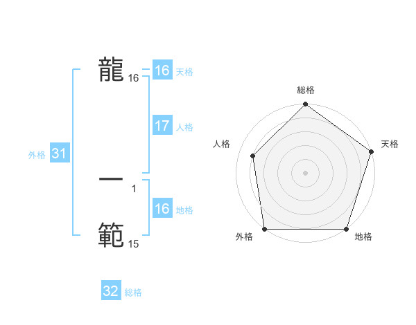龍 一範さんの外格は31画の5点!