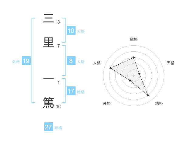 三里 一篤さんの外格は19画の1点!