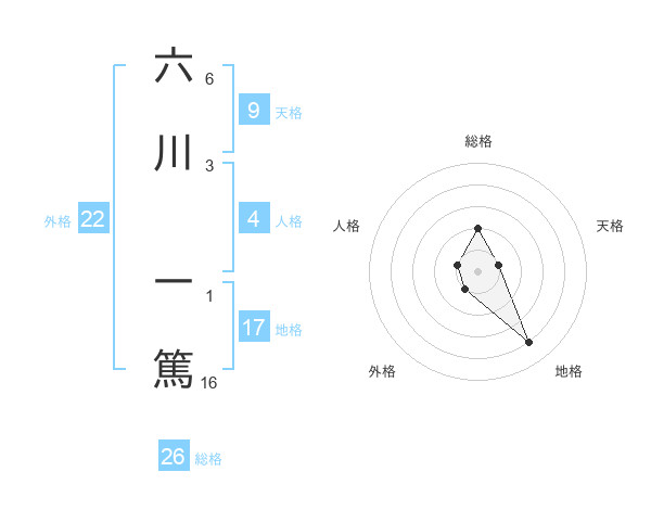六川 一篤さんの総格は26画の2点!