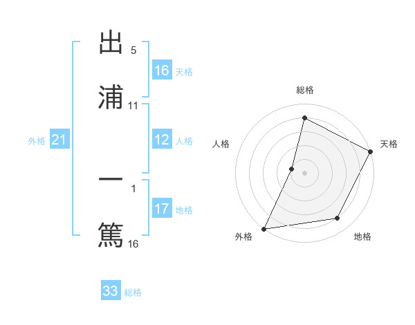 出浦 一篤さんを姓名の画数から五運を鑑定