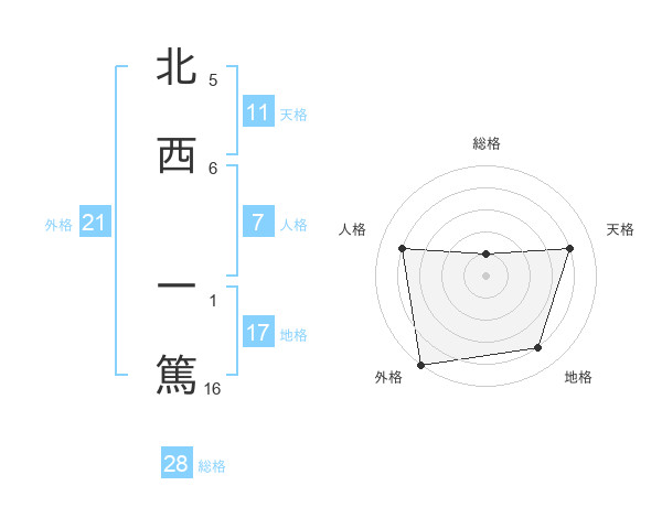 北西 一篤さんの天格は11画の4点!