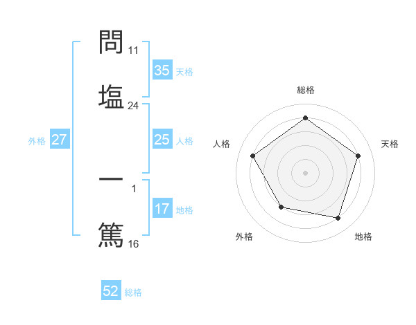 問塩 一篤さんを姓名の画数から五運を鑑定
