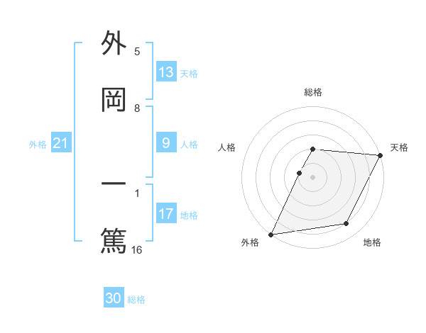 外岡 一篤さんの天格は13画の5点!