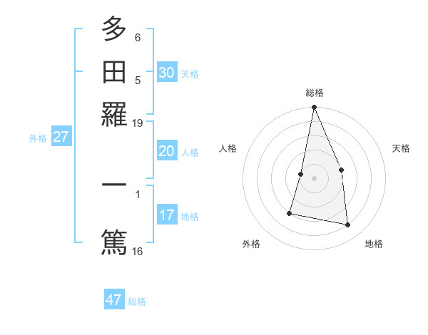 多田羅 一篤さんを姓名の画数から五運を鑑定