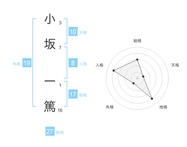 小坂 一篤さんを姓名の画数から五運を鑑定