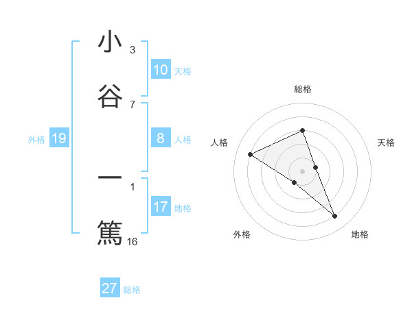 小谷 一篤さんを姓名の画数から五運を鑑定