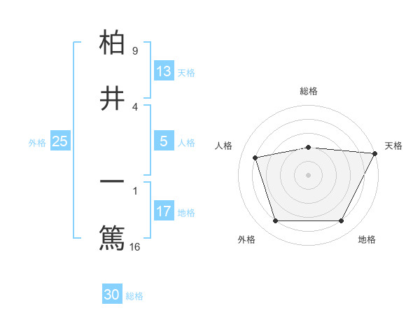 柏井 一篤さんの天格は13画の5点!