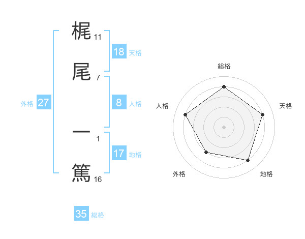 梶尾 一篤さんを姓名の画数から五運を鑑定