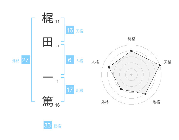 梶田 一篤さんを姓名の画数から五運を鑑定