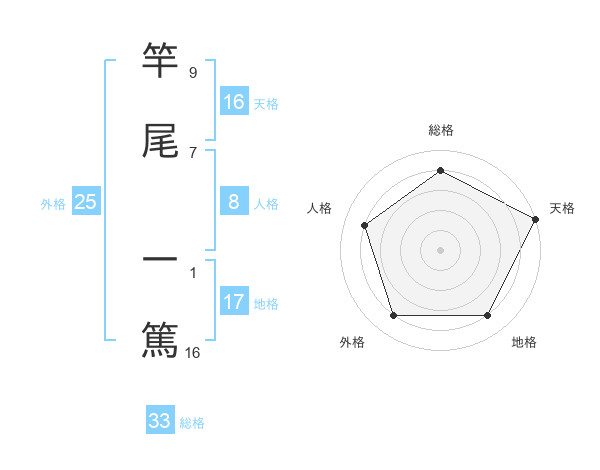竿尾 一篤さんを姓名の画数から五運を鑑定