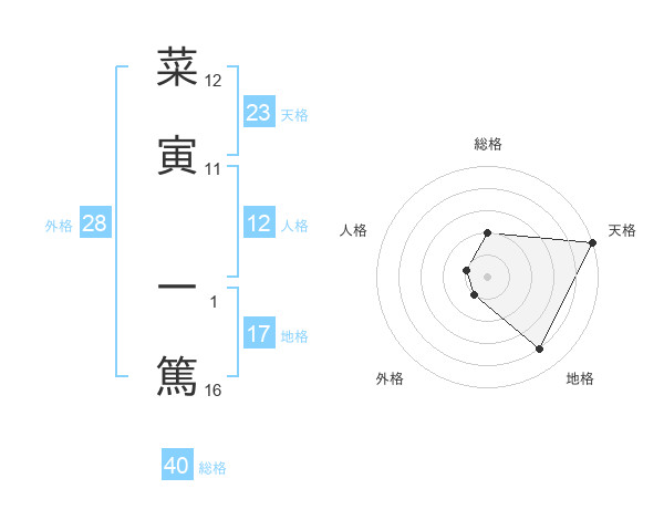 菜寅 一篤さんの天格は23画の5点!