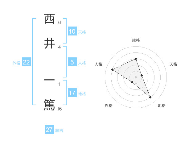 西井 一篤さんの総格は27画の3点!