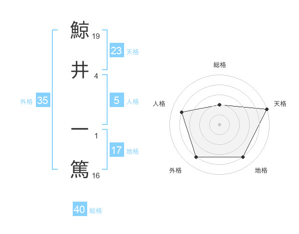 鯨井 一篤さんの天格は23画の5点!