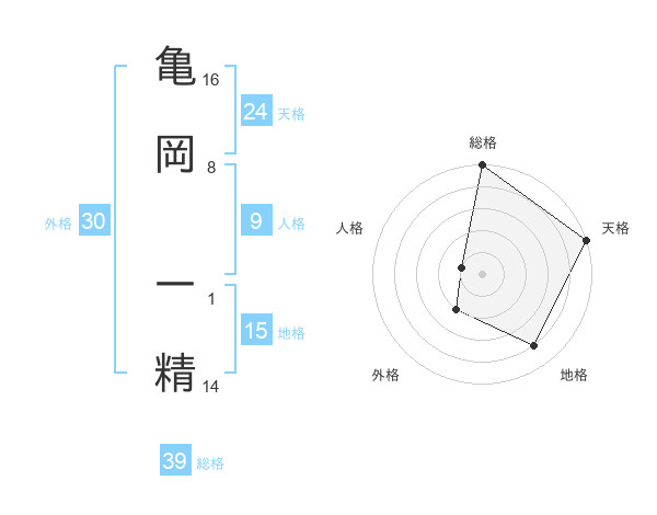 亀岡 一精さんを姓名の画数から五運を鑑定