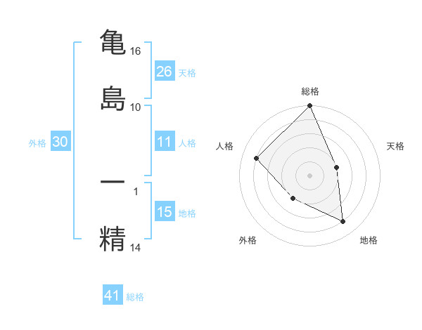 亀島 一精さんの総格は41画の5点!