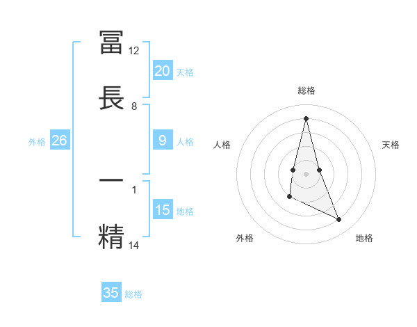 冨長 一精さんの総格は35画の4点!