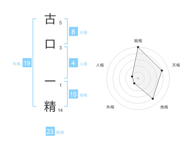 古口 一精さんの総格は23画の5点!