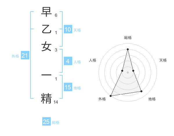 早乙女 一精さんを姓名の画数から五運を鑑定