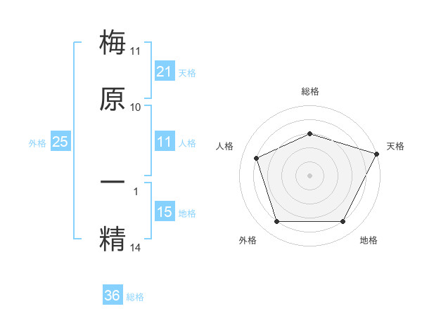 梅原 一精さんの天格は21画の5点!