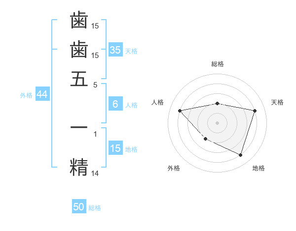 歯歯五 一精さんの総格は50画の2点!