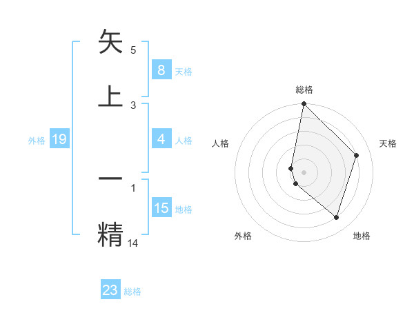 矢上 一精さんの天格は8画の4点!