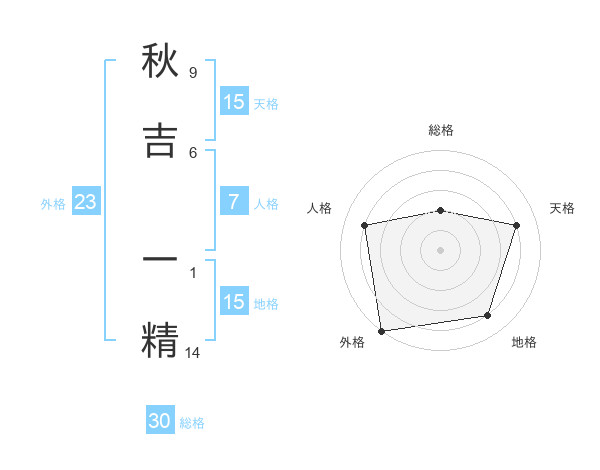秋吉 一精さんを姓名の画数から五運を鑑定