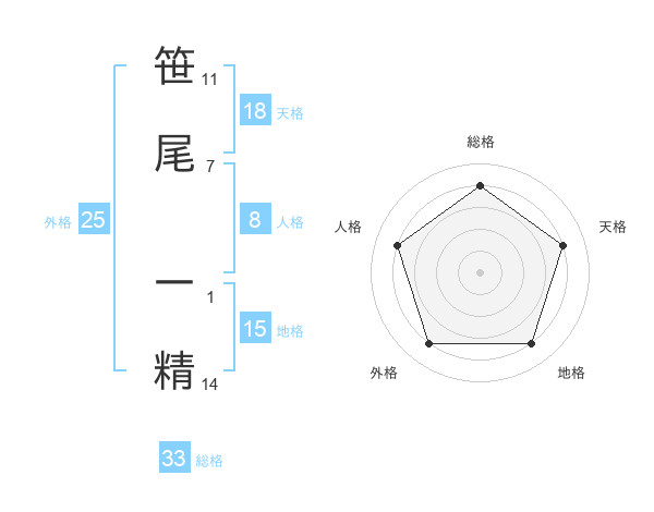 笹尾 一精さんを姓名の画数から五運を鑑定