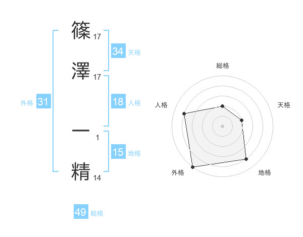 篠澤 一精さんの総格は49画の2点!