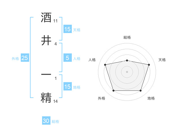 酒井 一精さんの天格は15画の4点!