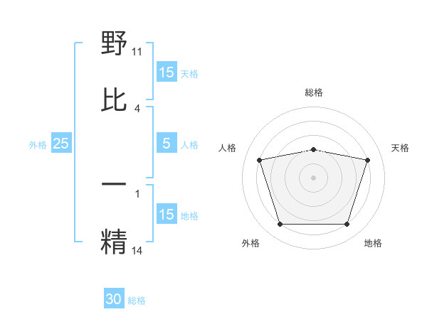 野比 一精さんの地格は15画の4点!