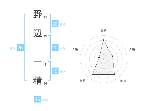 野辺 一精さんの総格は45画の4点!