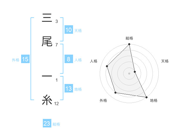 三尾 一糸さんを姓名の画数から五運を鑑定