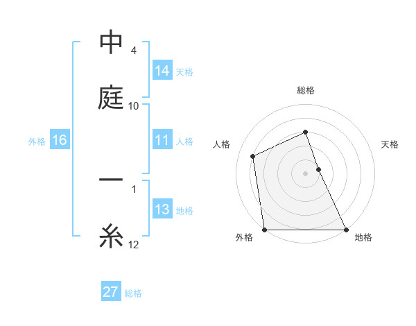 中庭 一糸さんを姓名の画数から五運を鑑定