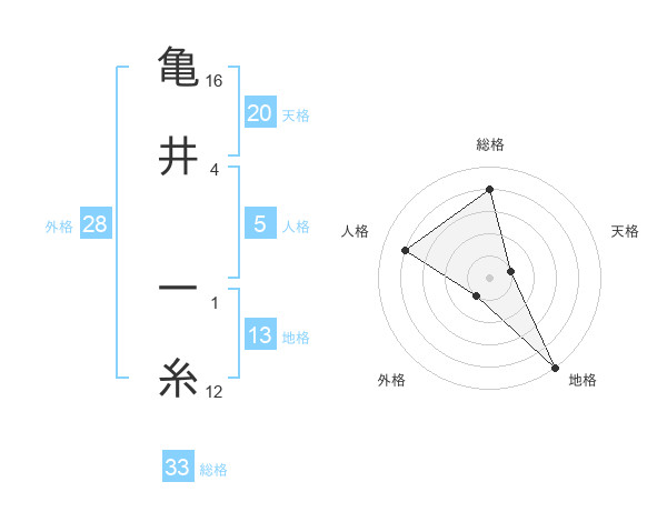亀井 一糸さんを姓名の画数から五運を鑑定