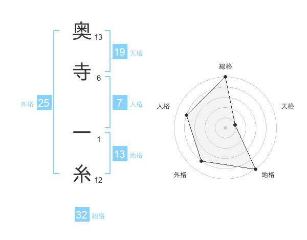 奥寺 一糸さんを姓名の画数から五運を鑑定