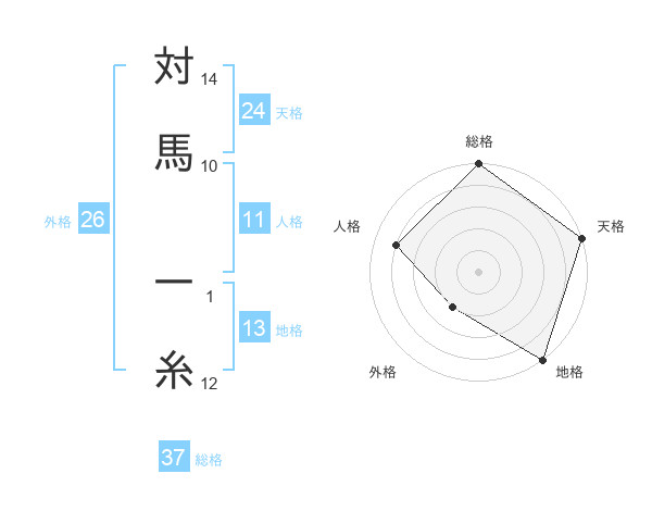 対馬 一糸さんの総格は37画の5点!