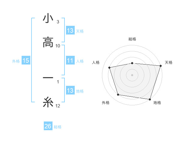 小高 一糸さんの天格は13画の5点!