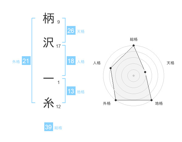 柄沢 一糸さんの総格は39画の5点!