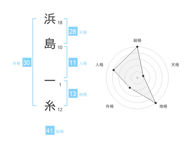 浜島 一糸さんの総格は41画の5点
