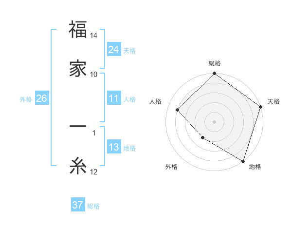 福家 一糸さんの総格は37画の5点!