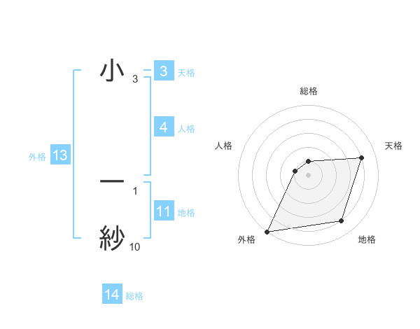 小 一紗さんの外格は13画の5点!