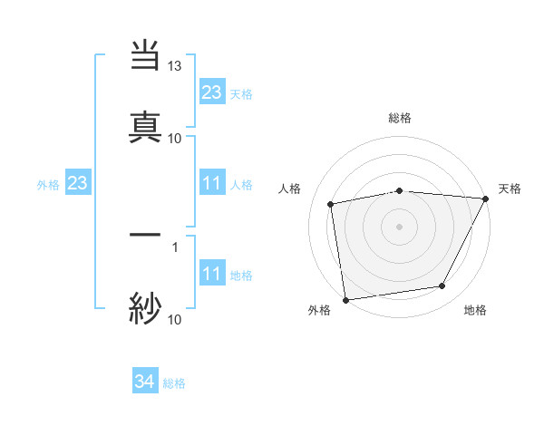 当真 一紗さんの天格は23画の5点