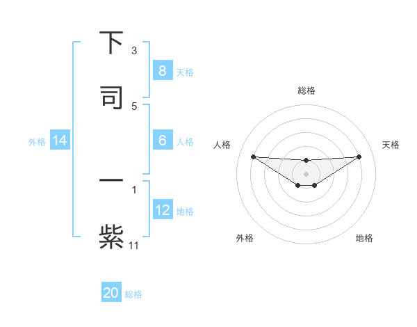下司 一紫さんの総格は20画の1点!