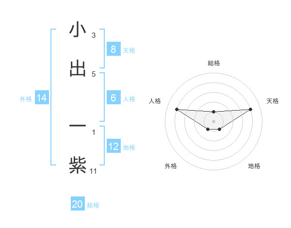 小出 一紫さんの総格は20画の1点!