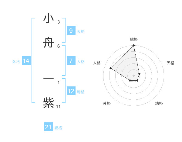 小舟 一紫さんを姓名の画数から五運を鑑定