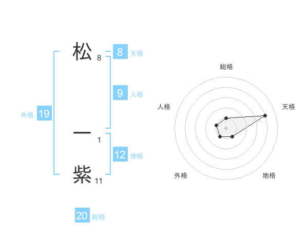 松 一紫さんの総格は20画の1点!