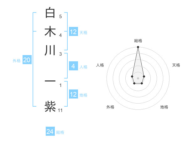 白木川 一紫さんの総格は24画の5点!