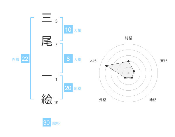三尾 一絵さんを姓名の画数から五運を鑑定