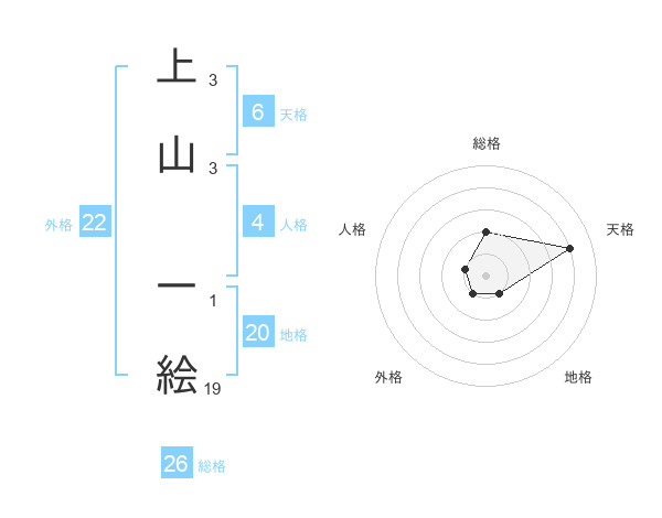 上山 一絵さんの総格は26画の2点!