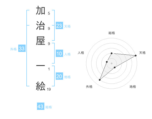 加治屋 一絵さんの総格は43画の2点